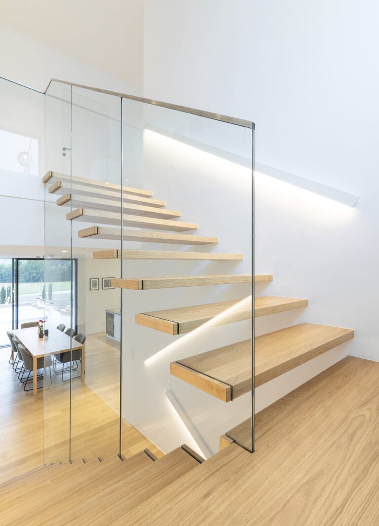 Freitragende Treppen, Treppenverkleidungen und Geländer